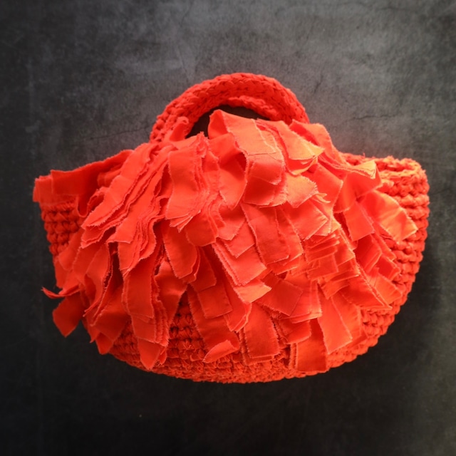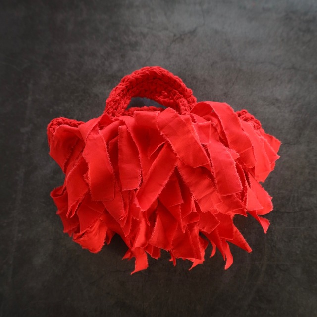 FRINGE TOTE BAG size : S color : Red material : cotton 100% ⸻ MIKI KAWAMURAで使用しているレッドは、深みのある赤。 鮮やかさの中に落ち着きを感じる色味で、 装いの中に自然な強さを添えます。 前面に重ねたフリンジが動くたびに揺れ、 色と立体感が重なり合い、存在感を生みます。 黒やグレー、ネイビーなどの装いに合わせると、 コーディネート全体を引き締めます。 ⸻ Sサイズについて Sサイズは、必要なものだけを持つ日のためのサイズ。 小ぶりでありながら、手に持ったときのバランスは崩れず、 装いの中で“軽さ”が残ります。 持ち歩くものを選びたい日のためのバッグです。 ⸻ サイズについて ・高さ:約14cm ・バッグ口直径:約21cm ・底直径:約16cm ・持ち手:約19cm ・重量:約270g ※文庫本2冊分ほどの重さ ※サイズはおおよその目安です。 ※ご使用により、全体的に1〜2cm程度伸びる場合がございます。 ⸻ 【色・サイズについて】 ・できる限り実物に近い色味で掲載しておりますが、モニター設定や照明環境により実際と異なる場合があります。 ・サイズは平置き採寸です。素材や編みの特性により1〜2cmほどの誤差が生じることがございます。 【お手入れ方法】 ・手洗い(おしゃれ着洗剤・押し洗い)推奨 ・濃色は色落ちの恐れがあります。単独でのお洗濯をお願いします。 ・形を整えて陰干ししてください ・漂白剤・乾燥機のご使用はお避けください 【ご注文前にご確認ください】 ・ご注文後のキャンセル/内容変更は承っておりません。 ・お客様都合による返品・交換もお受けしておりません。 内容をよくご確認の上、ご注文くださいませ。