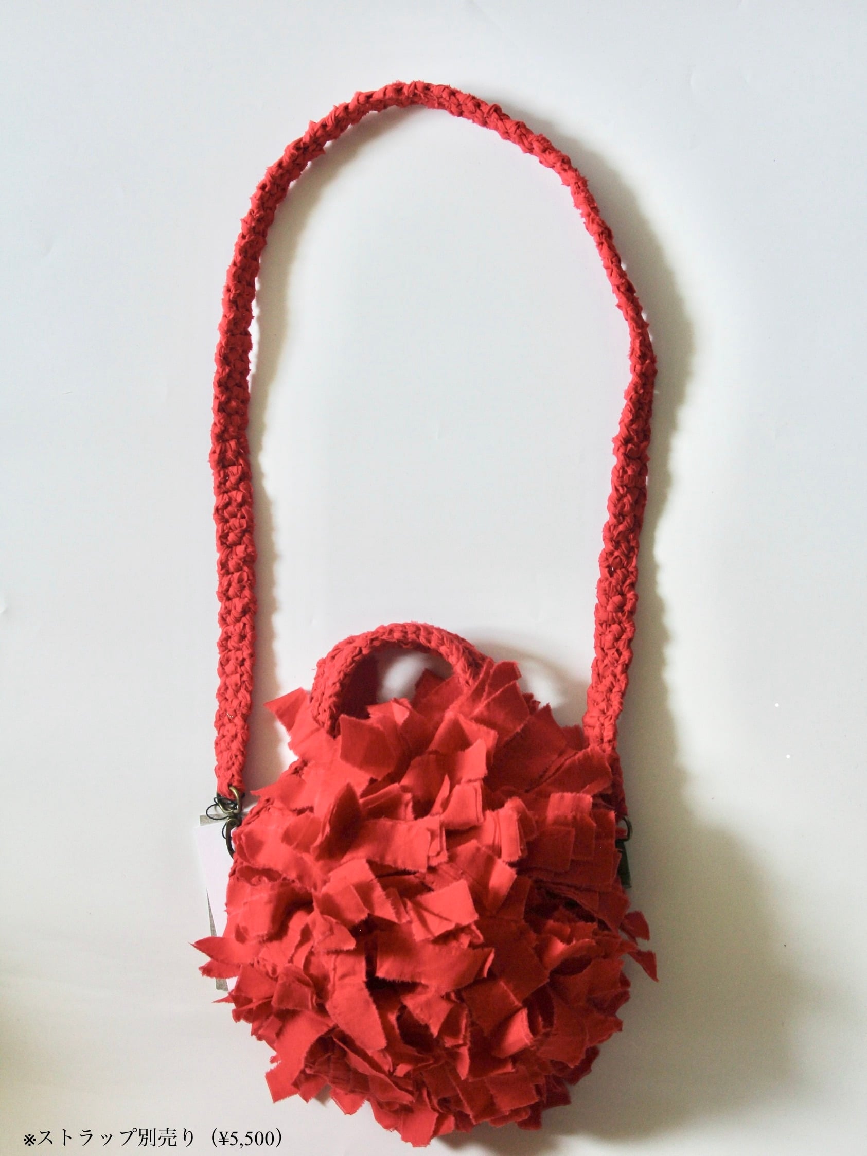 花をモチーフに、フリンジを重ねて立体的に仕上げたラウンドフリンジバッグ。