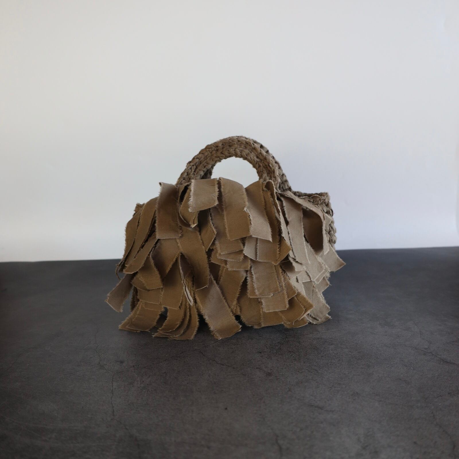 FRINGE TOTE BAG S Khaki